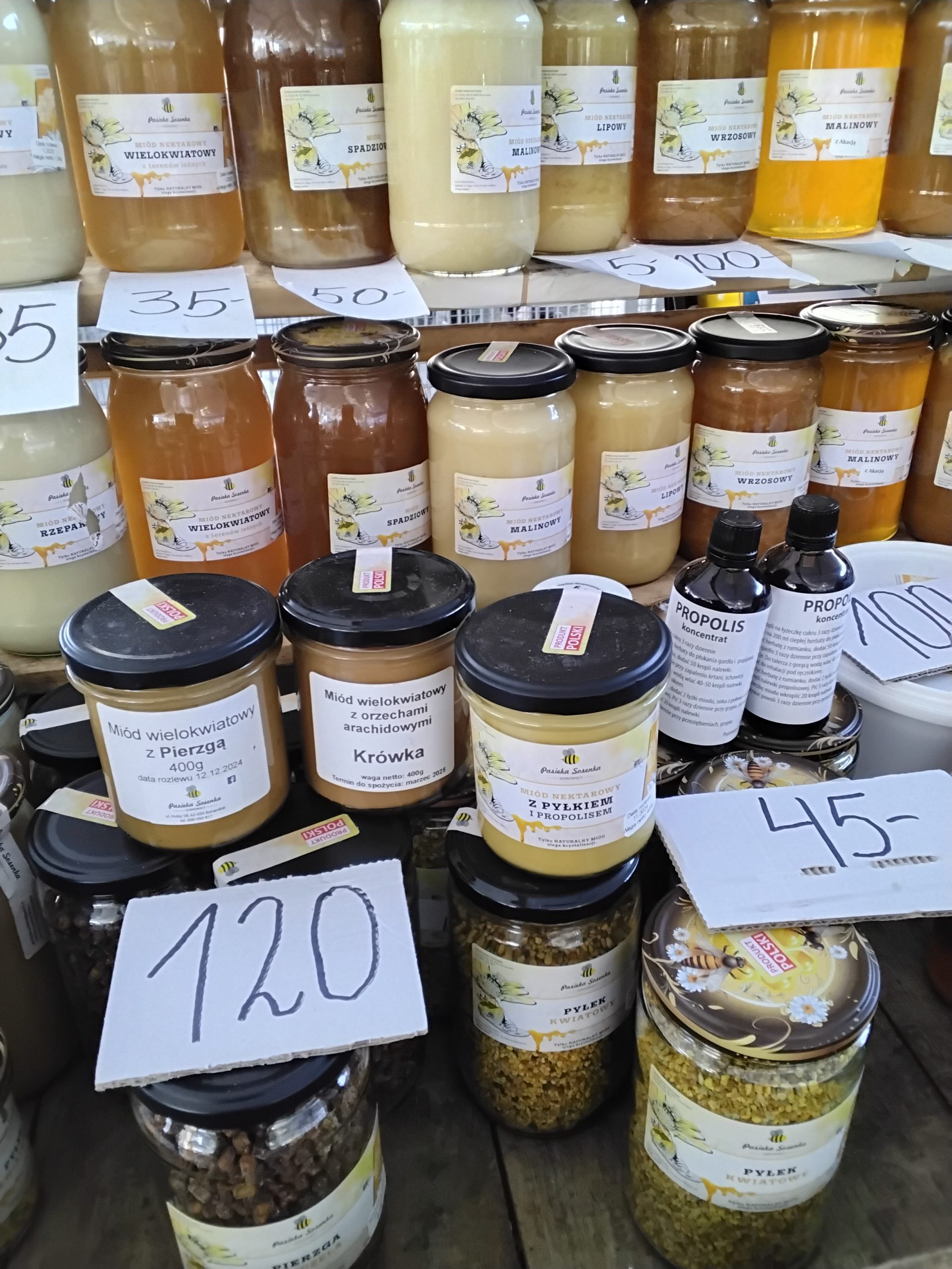 Na ten zimowy, grypowy czas najlepszym naturalnym lekarstwem są miody i produkty pszczele. Na naszych targowiskach znajdziecie pszczelarzy pasjonatów, którzy uwielbiają opowiadać o swoim zajęciu, o właściwościach poszczególnych miodów i zawsze chętnie doradzają jak prawidłowo korzystać z dobrodziejstwa natury- właściwości leczniczych miodów i innych pszczelich darów. Dowiecie się, że na górne i dolne drogi oddechowe najlepszy jest miód lipowy, miód malinowy wspomoże Wasze zatoki, spadziowy odtruje cały organizm, a gryczany wzmacnia serce, reguluje nadciśnienie i łagodzi skutki osteoporozy. Zaś królem polskich miodów został okrzyknięty miód wrzosowy, najbardziej antybiotyczny i porównywany z miodem manuka. Obok miodów znaczące działanie dla organizmu mają pszczeli pyłek i pierzga, które wzmacniają organizm dzięki dużej zawartości witamin i kwasów omega oraz propolis zwany najstarszym antybiotykiem świata.